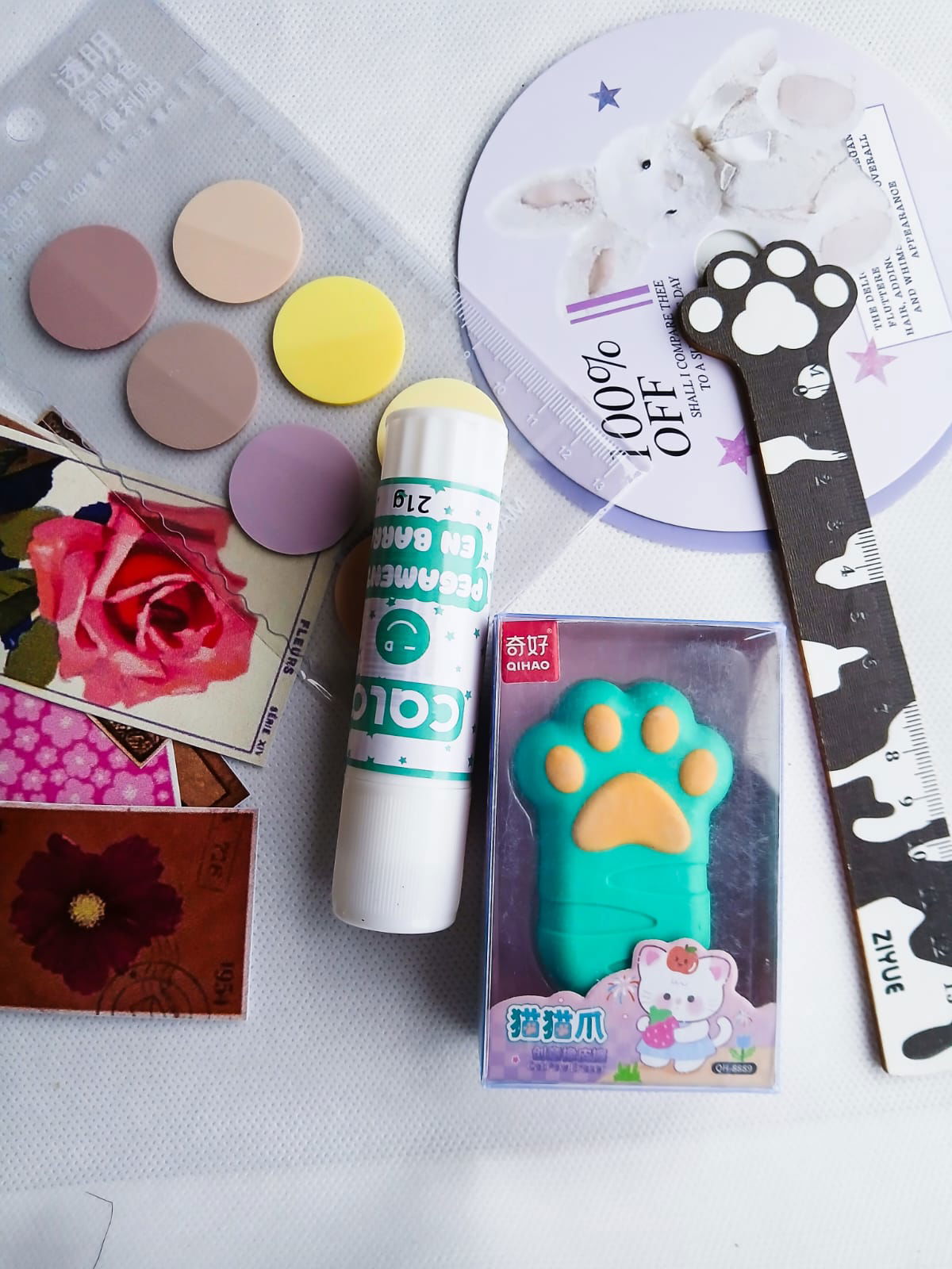 Este set incluye papleria de flores, papel cometa, stickers de vinilo, regla de gatito, goma de gatito, pegamento, tarjetas, etc diseñados especialmente para quienes disfrutan del mundo del journaling, scrapbook, bullet journal y la papelería creativa. Con ilustraciones delicadas, colores armoniosos y detalles encantadores, cada sticker es una pequeña obra de arte que hará brillar tu cuaderno.