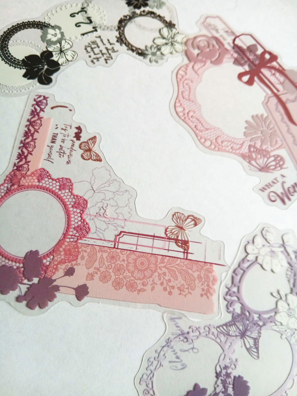 Set de marcos adhesivos estilo vintage en tonos pastel, ideales para enmarcar fotos, frases o dibujitos en tus proyectos de papelería. Cada pieza tiene forma de marco con bordes suaves y detalles retro que le dan un aire romántico y nostálgico a cualquier página.