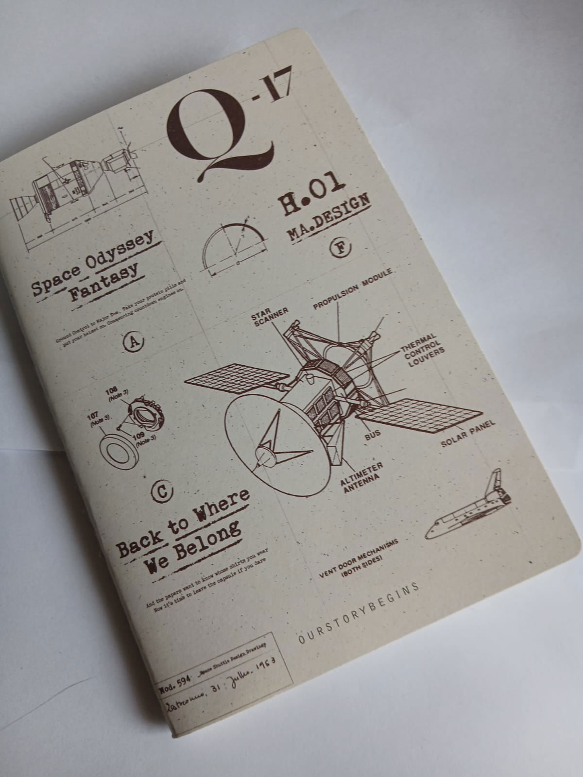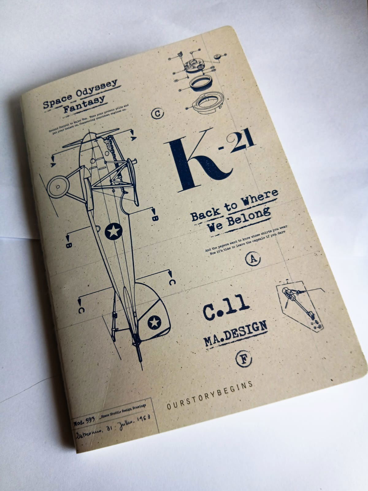 Libretas de tapa blanda con diseño tipo planos técnicos de naves y aviones, estética vintage en tonos beige. El interior es rayado, ideal para apuntes, notas de estudio o ideas del día a día. Perfecta para quienes aman el espacio, la ingeniería y la papelería con onda retro.